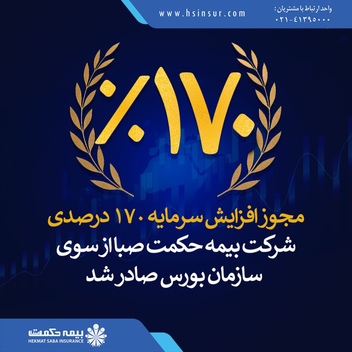 شرکت بیمه حکمت صبا با انتشار اطلاعیه‌ای در سامانه کدال از صدور مجوز افزایش سرمایه ۱۷۰درصدی خود از سوی سازمان بورس و اوراق بهادار خبر داد. این افزایش سرمایه از محل آورده نقدی و مطالبات حال شده سهامداران خواهد بود و سرمایه شرکت را از مبلغ 475ر113ر3 میلیون ریال به 000ر400ر8 میلیون ریال افزایش خواهد یافت.