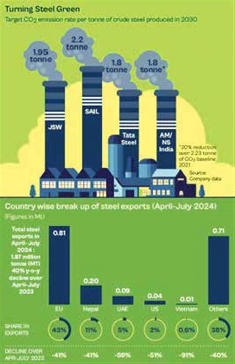 هند، همراه با چین و ایالاتمتحده، یکی از آلایندههای اصلی است. در سطح جهانی، تولید فولاد حدود 8 درصد از انتشار دیاکسیدکربن را تشکیل میدهد، بهطوریکه هر تن فولاد تولیدشده حدود 1.85 تن دیاکسیدکربن تولید میکند. شدت انتشار کربن در هند حتی از این رقم بالاتر است و تولید فولاد خام 2.5 میلیون تن دیاکسیدکربن به ازای هر تن منتشر میکند که 12 درصد از کل انتشارات گازهای گلخانهای این کشور را تشکیل میدهد (حدود 240 میلیون تن دیاکسیدکربن در سال، که انتظار میرود تا 2030 دو برابر شود). مسیر اصلی تولید فعلی فولاد در هند کوره بلند-کنورتور است که وابسته به زغال ککشو و سنگآهن است و از نظر شدت انتشار کربن بسیار بالاست؛ همچنین مسیر احیا مستقیم مبتنی بر زغال نیز در هند رایج است.